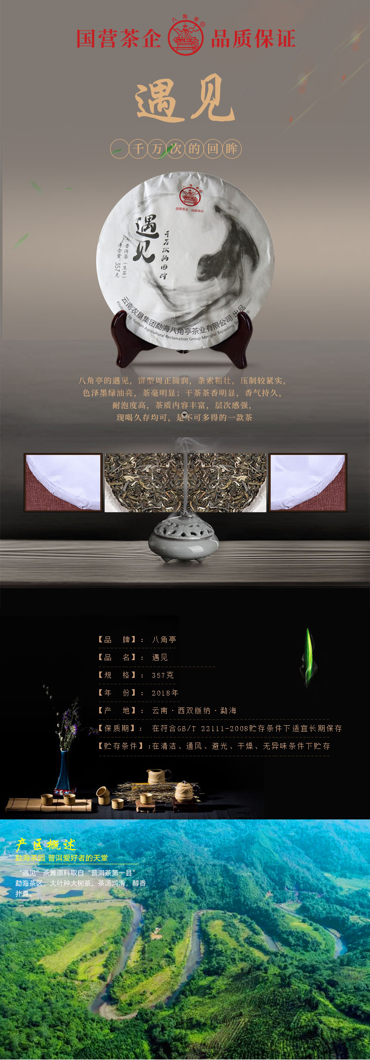 云墾茶業(yè)集團(tuán)下屬茶葉生產(chǎn)企業(yè)——云南農(nóng)墾集團(tuán)勐海八角亭茶業(yè)有限公司原名黎明茶廠(chǎng),是我國(guó)歷史最為悠久的茶企之一,曾位列“中國(guó)普洱茶十大知名品牌”“十大最受歡迎茶葉品牌”、“中國(guó)普洱茶十大暢銷(xiāo)品牌”中,成為今天市場(chǎng)上最有影響力的品牌之一。公司產(chǎn)品獲得“綠色食品”、ISO9001、 HACCP和云茶品牌(YC)4項(xiàng)認(rèn)證,連續(xù)獲得“云南名牌農(nóng)產(chǎn)品”“云南名牌產(chǎn)品”“云南省著名商標(biāo)”等品牌榮譽(yù),公司生產(chǎn)的多款普洱茶在歷次專(zhuān)業(yè)評(píng)比中多次獲得特等金獎(jiǎng)和金獎(jiǎng)。在2018第五屆中國(guó)企業(yè)五星品牌論壇上,云南農(nóng)墾集團(tuán)勐海八角亭茶業(yè)有限公司上榜中國(guó)普洱茶行業(yè)影響力品牌——“金芽獎(jiǎng)”,公司負(fù)責(zé)人陳勝軍先生獲“陸羽獎(jiǎng)”,被授予2017“國(guó)際十大杰出茶人”榮譽(yù)稱(chēng)號(hào)。