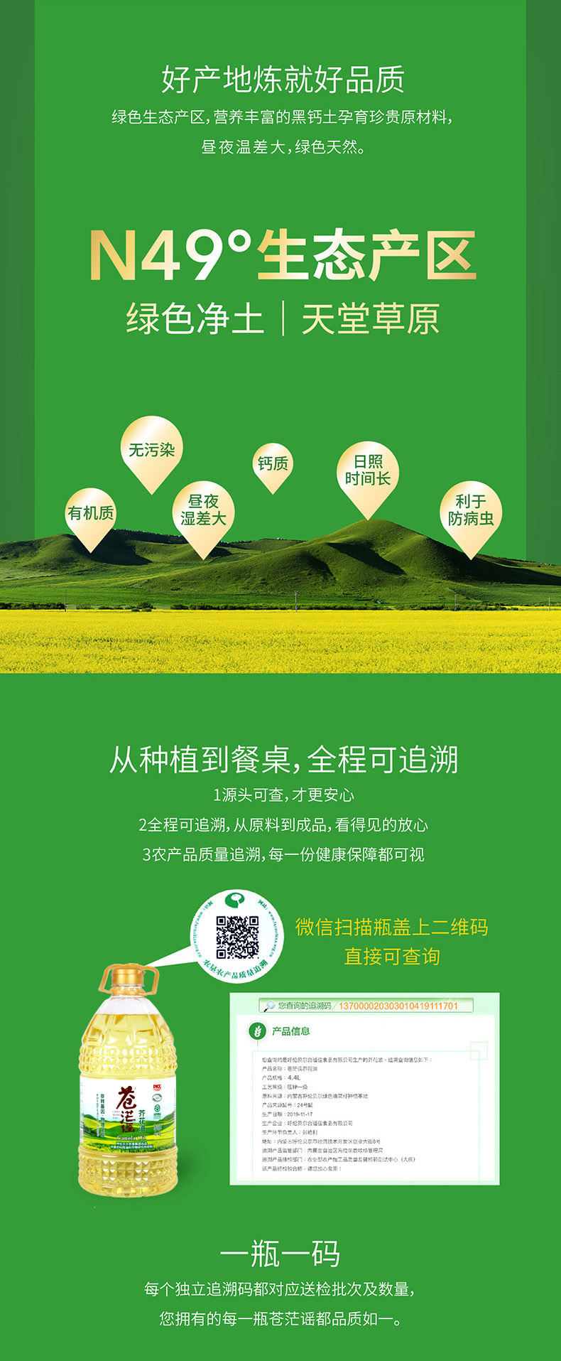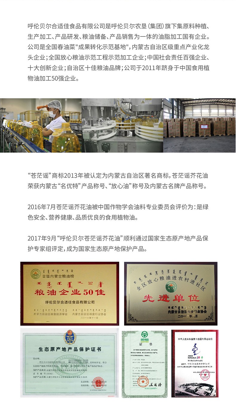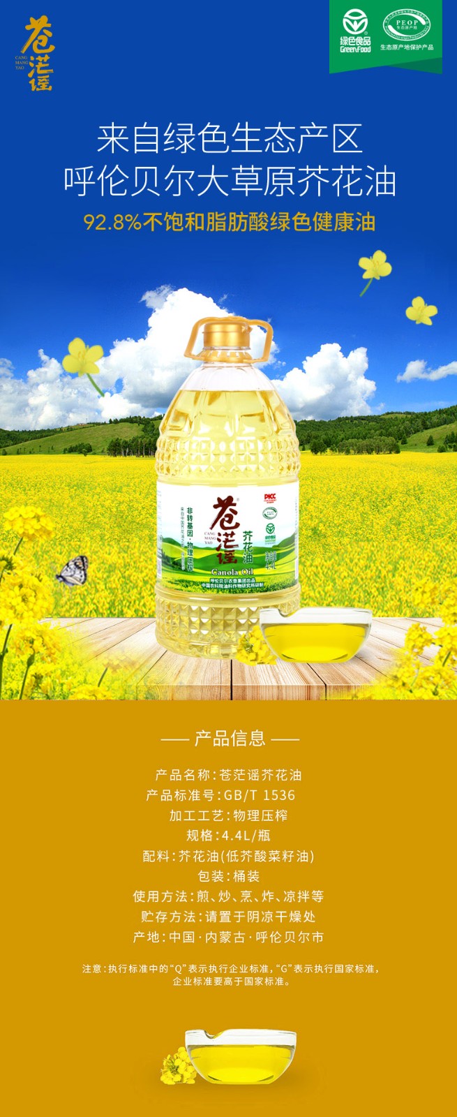 呼倫貝爾農(nóng)墾出品蒼茫謠芥花油非轉(zhuǎn)基因低芥酸菜籽油4.4L裝
